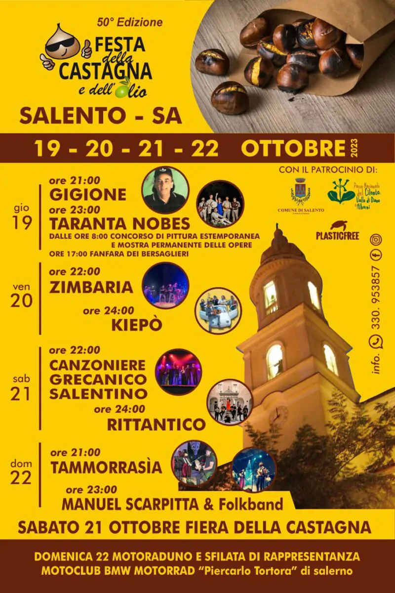 Celebrazione di una tradizione secolare e fulcro della comunità locale, la Festa della Castagna a Salento, non è soltanto una festa popolare, ma un momento di espressione dell’identità culturale e sociale del territorio. Ideata nel 1970 da Antonio Gorga e un gruppo di compaesani, la manifestazione è cresciuta esponenzialmente grazie all'impegno della comunità, mantenendo sempre vivo il suo spirito originale.